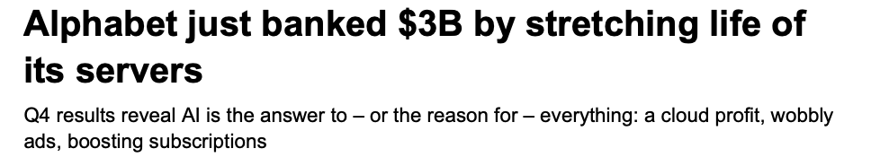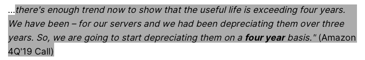 In Q1 2022, it moved to 5 years, and by 2024 it had moved servers to 6 years, stating software efficiencies and improved hardware.