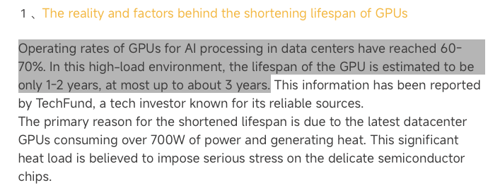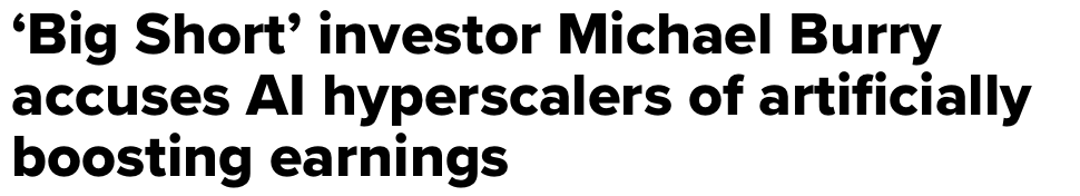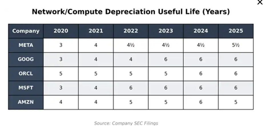 He warns that the big AI companies (MAGA 7) are tweaking the estimated useful life to show inflated operating income. These are under the rights of management to change the estimates, but what is concerning is that for decades the industry standard was 3 years. Post the cloud era, AWS and Azure claimed to have developed sophisticated software which can still extract data from old servers, which made them increase the estimated asset life from 3 years to 4 or 5 years.